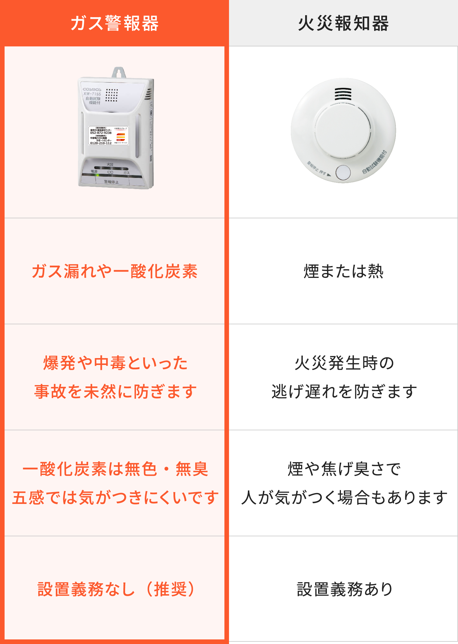 ガス警報器の違い