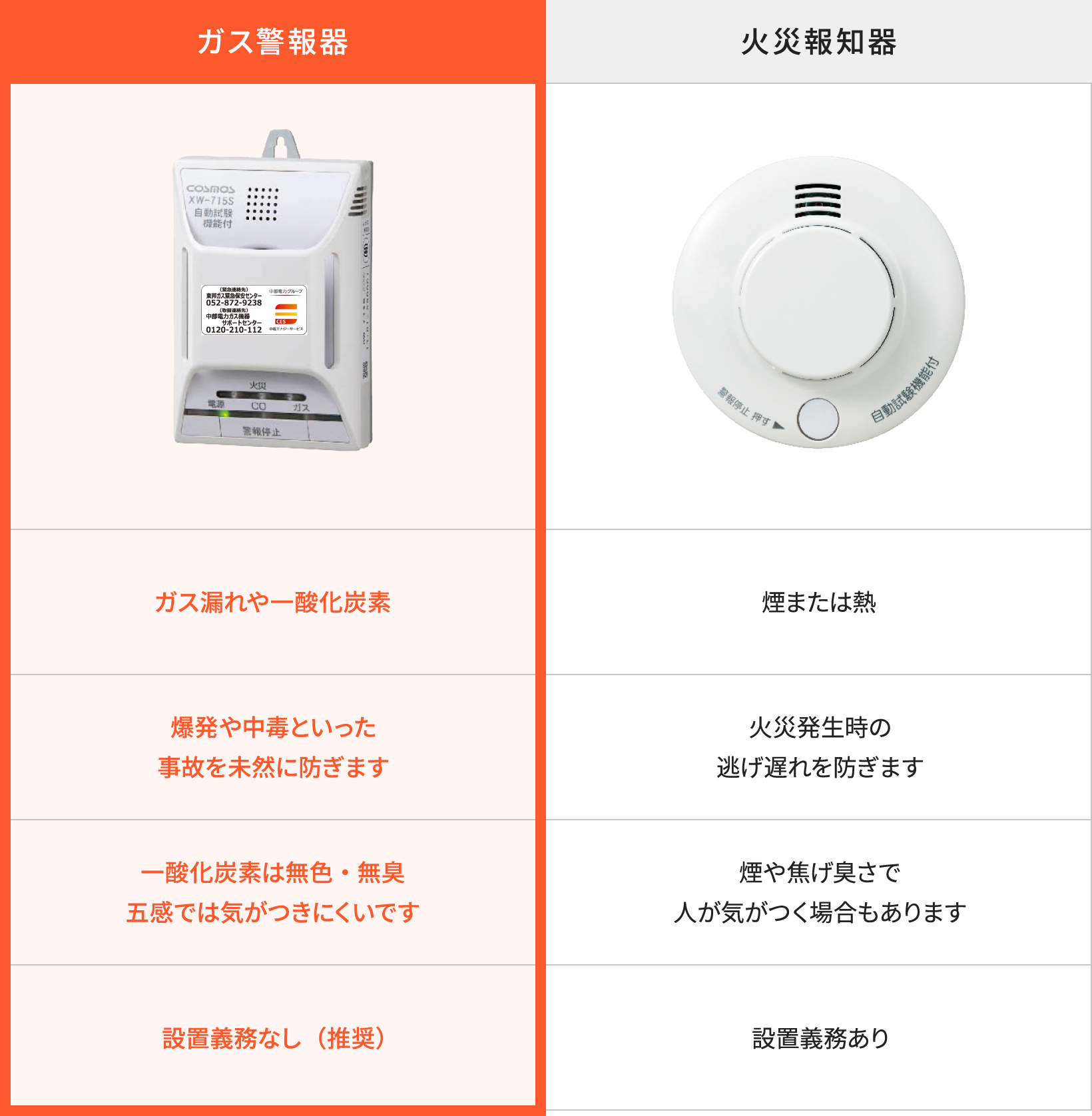 火災報知器とガス警報器は